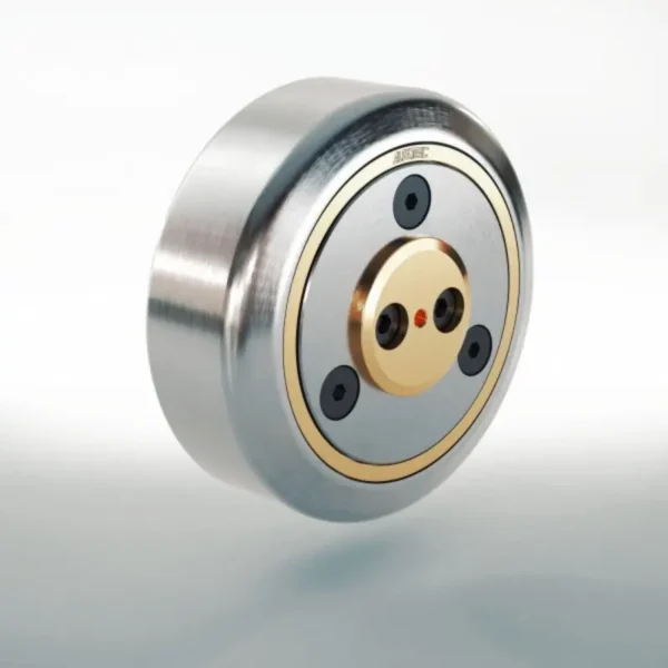 The ALFATEC Tiger roller with a diameter of 149 mm has a glide piece. Axial guidance is provided by a brass sliding piece. Thanks to its combined design with radial and axial guidance, the Tiger roller requires hardly any installation space and impresses with its robustness and high load capacity of up to 51.94 kN radially and 31.20 kN axially.